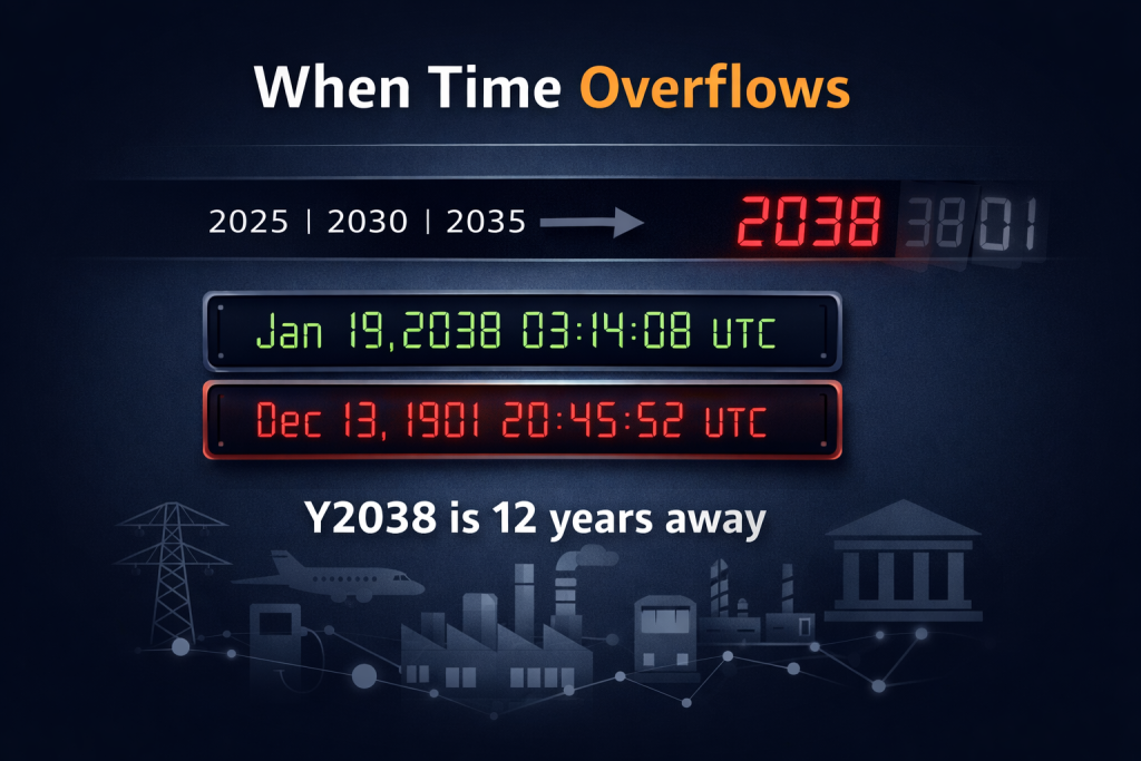 Many systems represent time as “seconds since January 1, 1970.” If that counter is stored in a signed 32-bit integer, it eventually overflows. That can cause time to jump backward, dates to become invalid, or time-based logic to behave unpredictably.